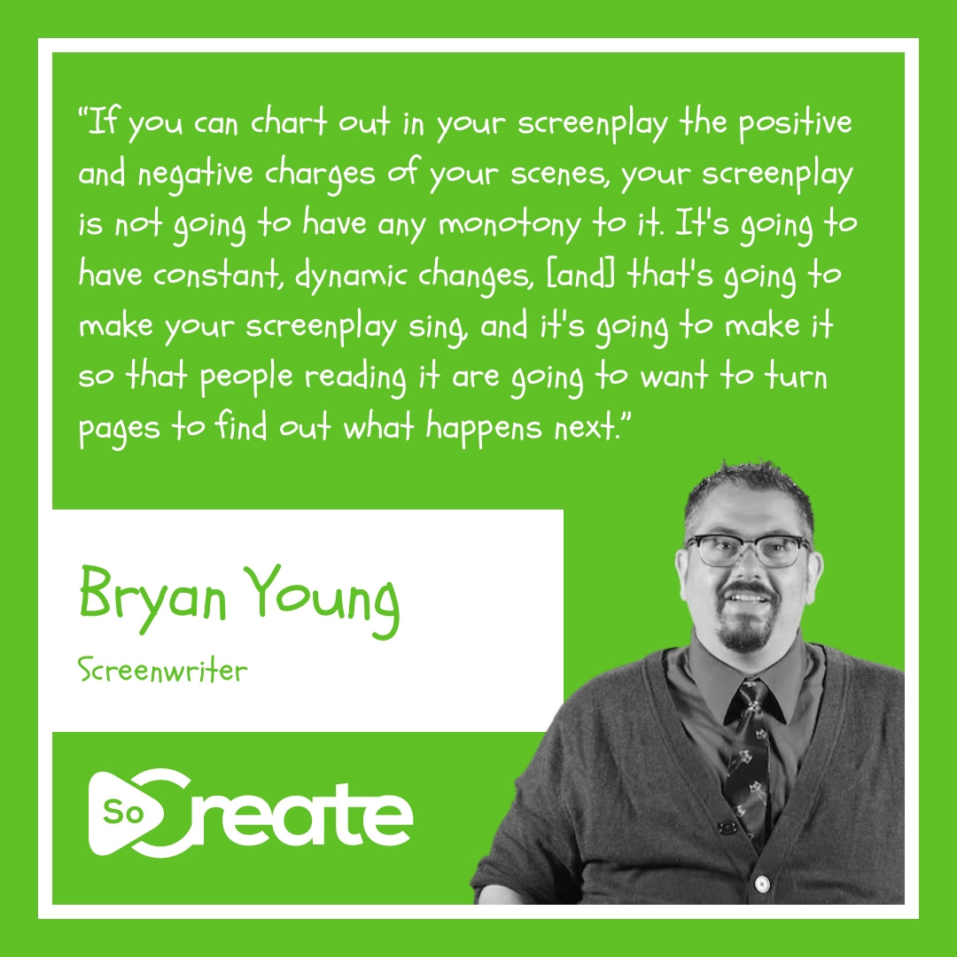 Every great scene has emotional movement. Learn from Bryan Young, award-winning screenwriter, journalist, author, & podcaster, how to use positive and negative charges to give your scenes energy, direction, and impact that keeps audiences hooked. Master emotional shifts in your scenes.